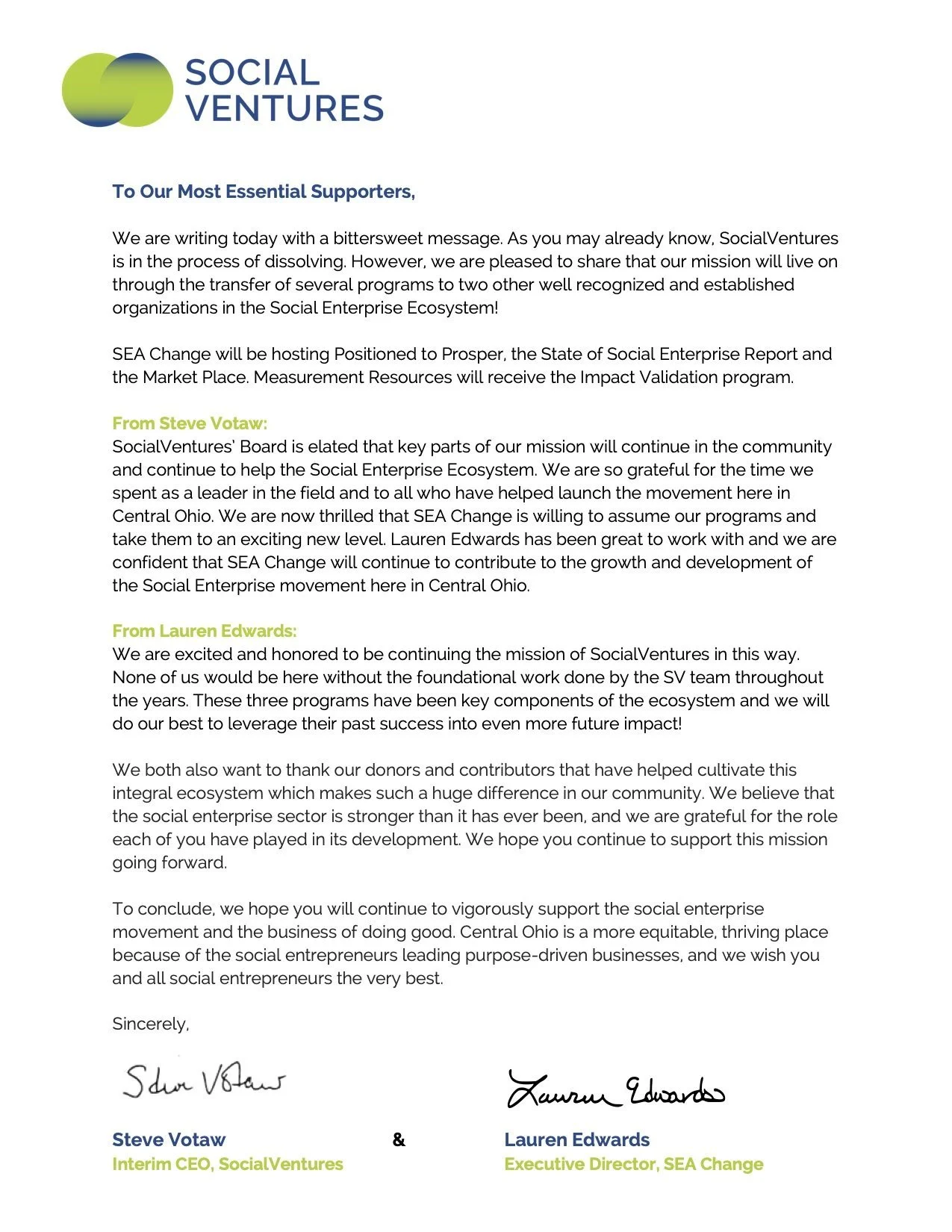 In early 2023, the Board of SocialVentures made the difficult decision to close their doors.